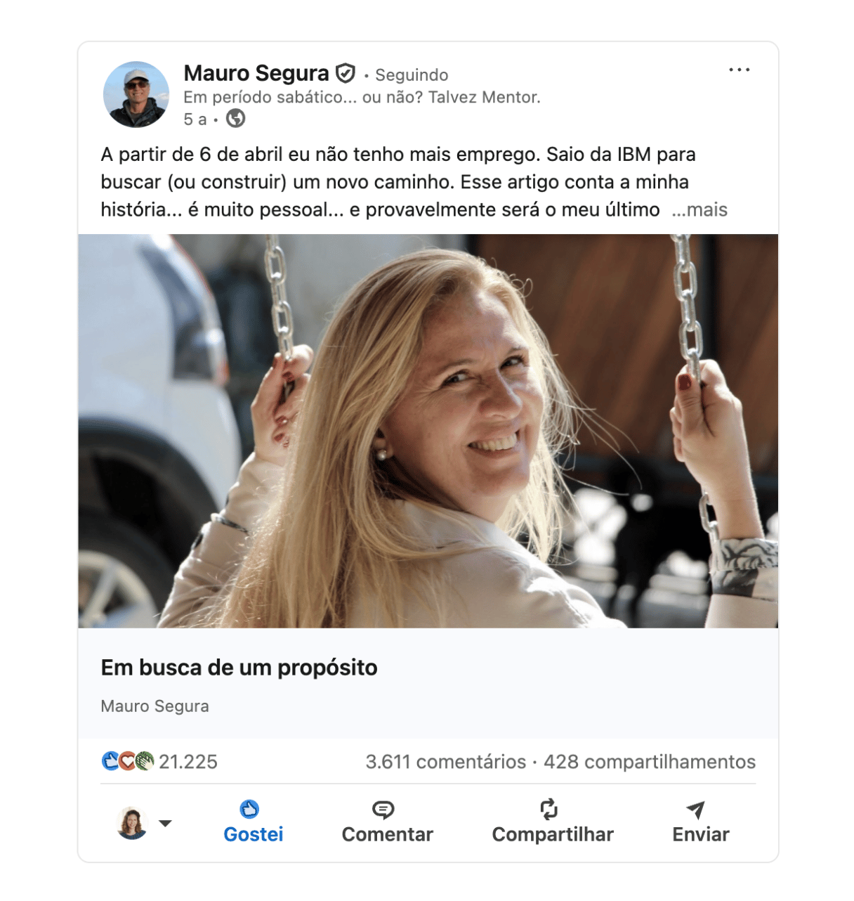 Ler um primeiro post do Mauro Segura no Linkedin me deixou com um saborzinho agridoce na boca. O ano era 2020 e ele me fisgou com a publicação abaixo: